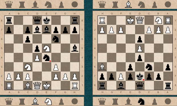 ОБРАТИТЕ ВНИМАНИЕ: на Гамблере после превращения пешки игра на обеих досках останавливается,