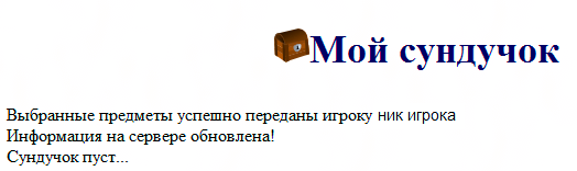 Выбрав категорию и количество передаваемых Вами другому игроку билетов, Вы нажимаете кнопку "Передать". При этом билеты переходят к своему новому владельцу а Вы видите на экране следующую картинку:(Рисунок3: в Вашем сундучке стало пусто)