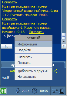 Вы получили информацию о том, что он готов получить Вашу помощь. Теперь Вы находите его в клубе. Правой кнопкой мыши кликаете на его ник. В всплывающем меню, выбираете пункт информация левым кликом мыши.(рисунок 3)